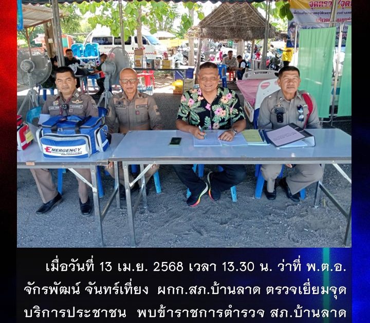 ว่าที่ พ.ต.อ.จักรพัฒน์ จันทร์เที่ยง ผกก.สภ.บ้านลาด ตรวจเยี่ยมจุดบริการประชาชน เมื่อวันที่ 13 เม.ย. 2568 เวลา 13.30 น.