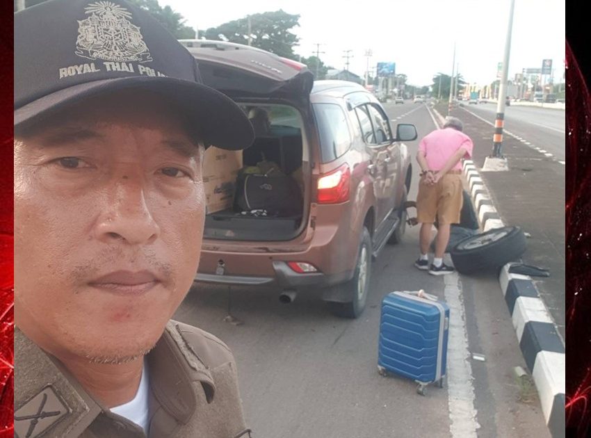 สภ.บ้านลาด ได้รับแจ้งเหตุรถยางแตก ต้องการความช่วยเหลือ อยู่ฝั่งตรงข้าม โรบินสัน เมื่อวันที่ 13 ส.ค. 68 เวลา 17.58 น.