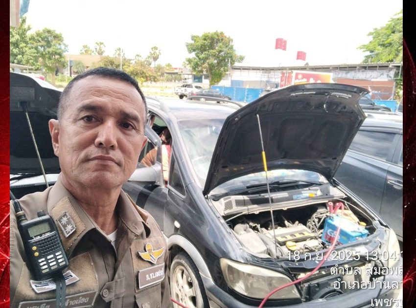 สายตรวจจราจร ให้ความช่วยเหลือประชาชน กรณีรถสตาร์ทไม่ติด เมื่อวันที่ 18 ก.ย.2568 เวลา 13.00 น.