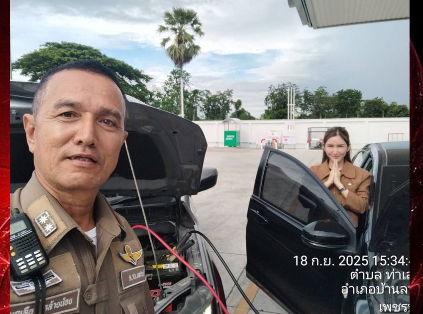 สายตรวจจราจร ให้ความช่วยเหลือประชาชน กรณีรถสตาร์ทไม่ติด เมื่อวันที่ 18 ก.ย.2568 เวลา 15.30 น.