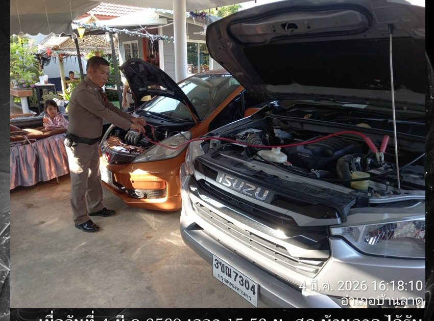 สายตรวจบ้านลาด 1212 ให้การช่วยเหลือประชาชนกรณีรถสตาร์ทไม่ติด เมื่อวันที่ 4 มี.ค.2569 เวลา 15.52 น.