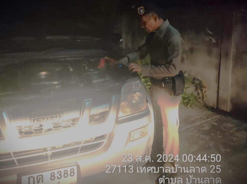 เมื่อวันที่ 23 ส.ค.67 เวลา 00.20 น. ศูนย์ฯ 191 ภ.จว.เพชรบุรี แจ้งรับแจ้งมีเหตุขอความช่วยเหลือ รถสตาร์ทไม่ติดต้องการความช่วยเหลือ บริเวณซอยเทศบาล บ้านลาด 14 ได้สั่งการ สภ.บ้านลาด โดยสายตรวจบ้านลาด 20, 203 เข้าให้การช่วยเหลือพ่วงแบตฯ ให้จนสตาร์ทรถติดเรียบร้อย