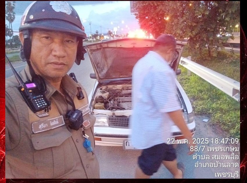 สายตรวจบ้านลาด 664+666 ให้การช่วยเหลือประชาชนกรณีรถสตาร์ทไม่ติดเมื่อวันที่ 22 พ.ค.68 เวลา 18.43 น.