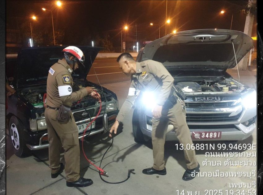 สายตรวจสมอพลือ 03, สายตรวจจราจร ให้ความช่วยเหลือประชาชน กรณีรถสตาร์ทไม่ติด เมื่อวันที่ 14 พ.ย.2568 เวลา 19.24 น.