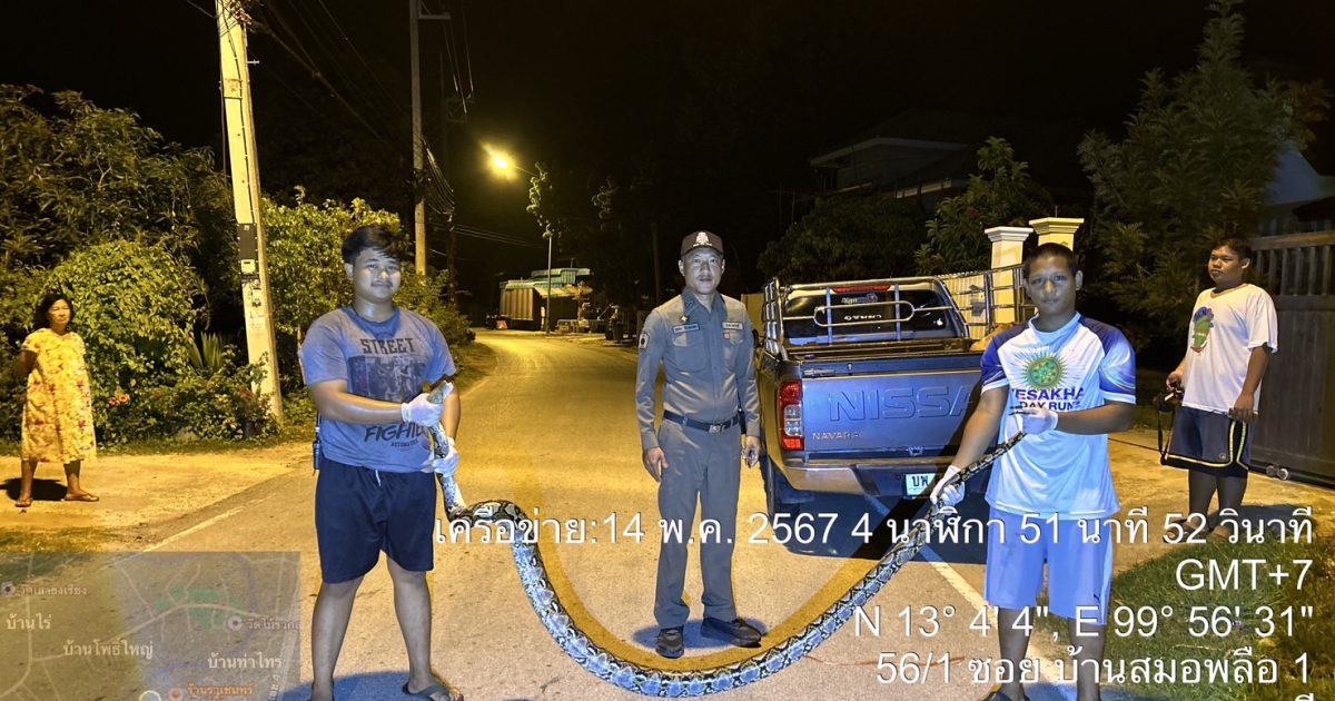 เมื่อวันที่ 14 พ.ค.67 เวลา 04.11 น. ศูนย์ฯ 191 รับแจ้งเหตุมีประชาชนขอความช่วยเหลือมีงูเข้ามาในบริเวณบ้าน ทำร้ายแมวตายไป 1 ตัว ที่ หมู่ 1 ต.สมอพลือ อยู่ติดกับร้านทองม้วนแม่ส้มแป้น  ได้สั่งการ สภ.บ้านลาด โดย สายตรวจสมอพลือ 03 ร่วมกับกู้ภัยบ้านลาดเข้าดำเนินการให้การช่วยเหลือจับงูไปปล่อยคืนสู่ธรรมชาติเรียบร้อย