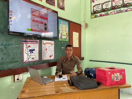 ด.ต.ณรงค์ ทองพูล ครูตำรวจแดร์ประจำ สภ.บ้านลาด บรรยายให้ความรู้ เรื่อง การป้องกันการโดนล่วงละเมิดทางเพศต่อเด็ก โทษของบุหรี่/บุหรี่ไฟฟ้า และ สารเสพติดให้โทษประเภทต่างๆ ให้กับนักเรียน โรงเรียนในพื้นที่ สภ.บ้านลาด