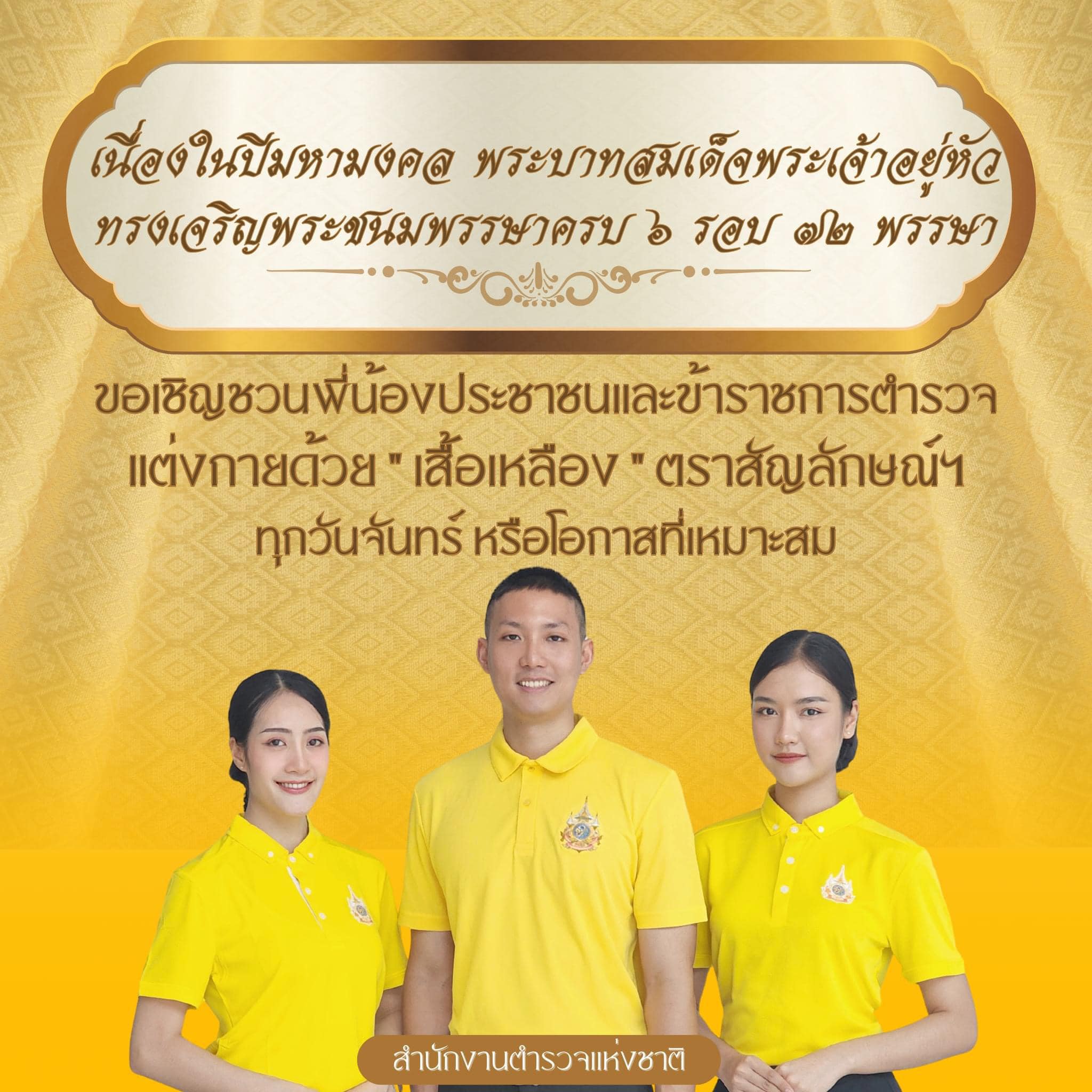 เชิญชวนประชาชน และข้าราชตำรวจ สวมใส่เสื้อเหลือง ตราสัญลักษณ์ ฯ . เนื่องในปีมหามงคล พระบาทสมเด็จพระเจ