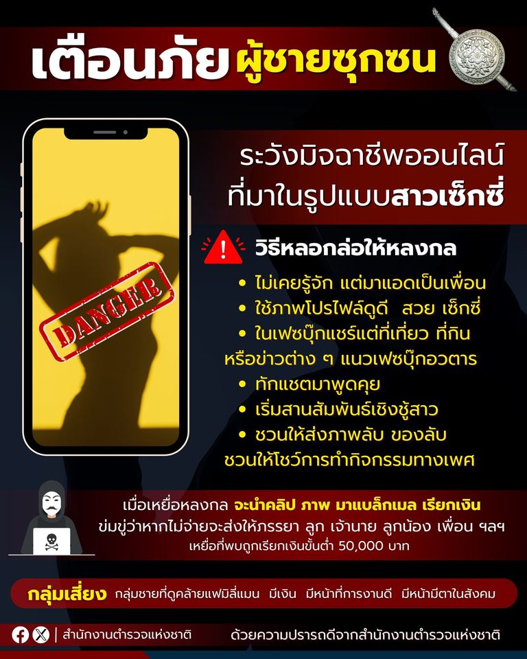 ระวังมิจฉาชีพออนไลน์ ที่มาในรูปแบบสาวสวยเซ็กซี่ หลอกให้โชว์ แล้วแบล็กเมล ข่มขู่เรียกเงิน
