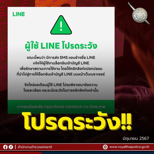 คำเตือนจาก LINE Thailand หากได้รับข้อความลักษณะ เช่นนี้ อย่าเชื่ิอ อย่าหลงกล“ผู้ใช้ LINE โปรดระวังขณ