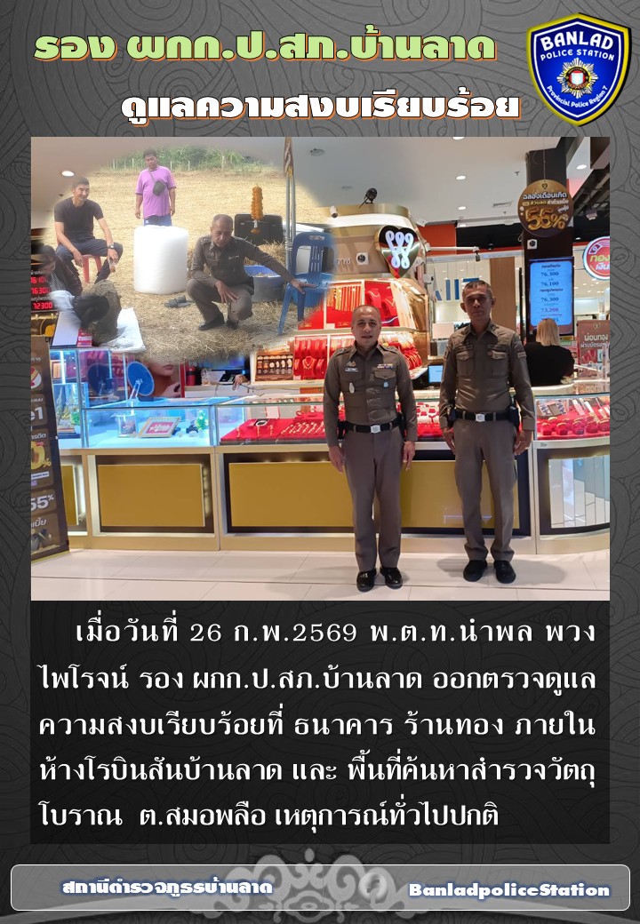 พ.ต.ท.นำพล พวงไพโรจน์ รอง ผกก.ป.สภ.บ้านลาด ออกตรวจดูแลความสงบเรียบร้อย เมื่อวันที่ 26 ก.พ.2569 4 มีนาคม 2569 โดย ณัฐวุฒิ เมืองขวัญใจ