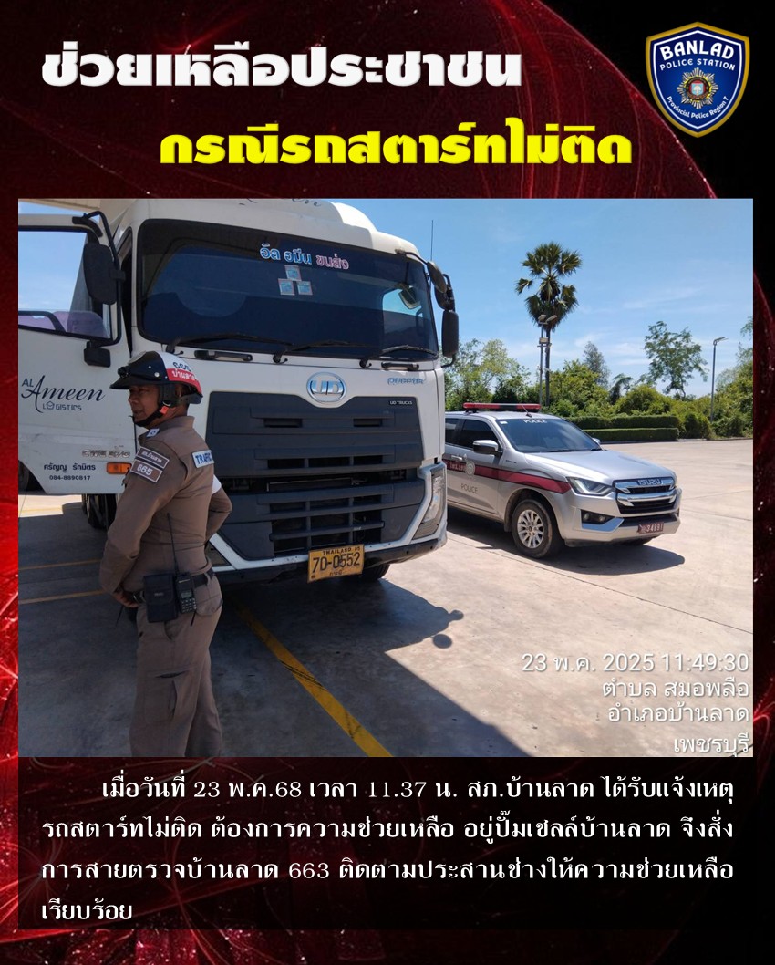 สายตรวจบ้านลาด 663 ให้การช่วยเหลือประชาชน กรณีรถสตาร์ทไม่ติด เมื่อวันที่ 23 พ.ค.68 เวลา 11.37 น. 29 พฤษภาคม 2568 โดย ณัฐวุฒิ เมืองขวัญใจ