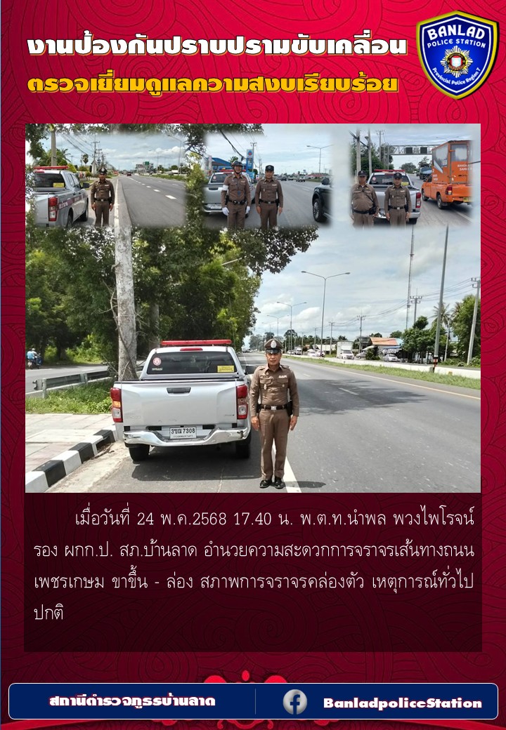 พ.ต.ท.นำพล พวงไพโรจน์ รอง ผกก.ป. สภ.บ้านลาด อำนวยความสะดวกการจราจรเส้นทางถนนเพชรเกษม เมื่อวันที่ 24 พ.ค.2568 28 พฤษภาคม 2568 โดย ณัฐวุฒิ เมืองขวัญใจ