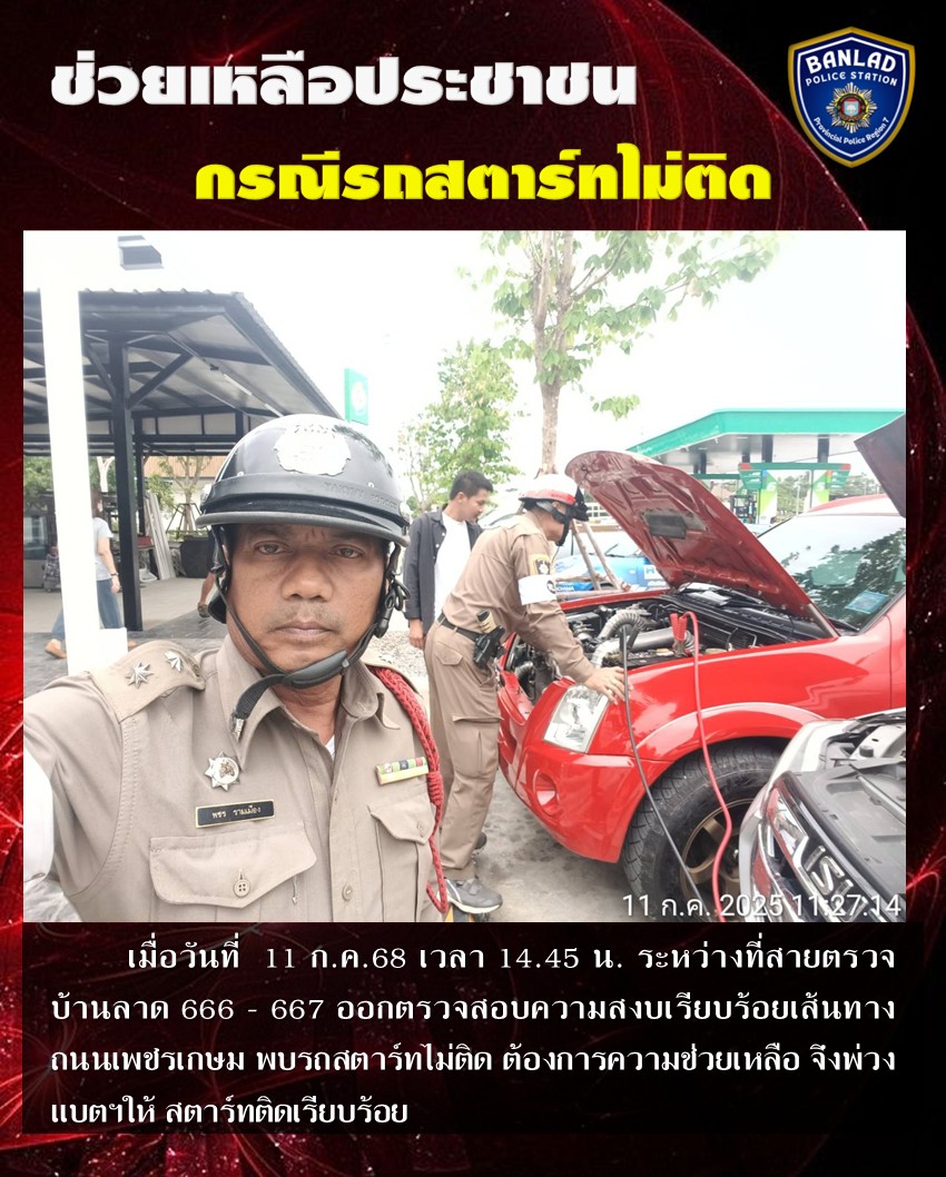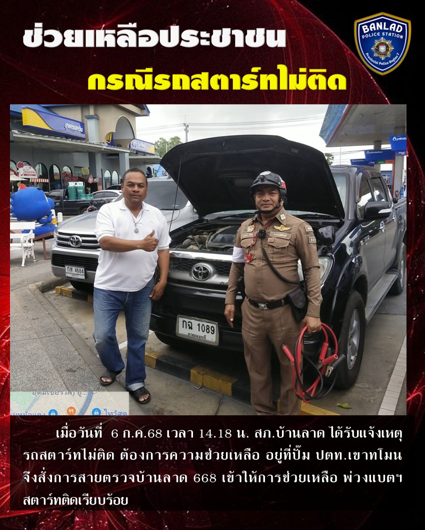 สายตรวจบ้านลาด 668 ให้การช่วยเหลือประชาชน กรณีรถสตาร์ทไม่ติด เมื่อวันที่ 6 ก.ค.68 เวลา 14.18 น. 9 กรกฎาคม 2568 โดย ณัฐวุฒิ เมืองขวัญใจ