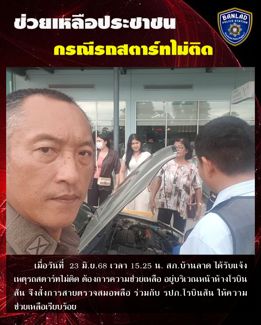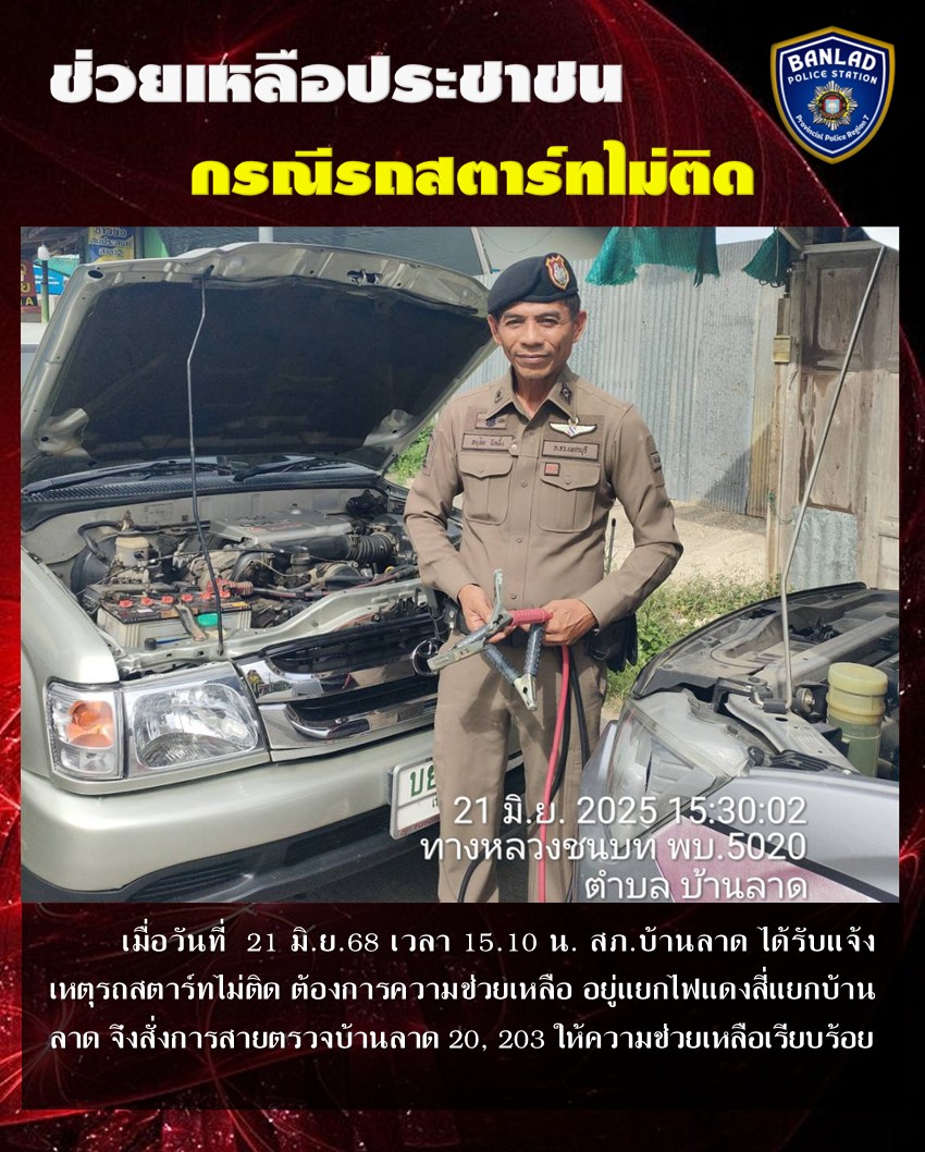 สายตรวจบ้านลาด 20, 203 ให้ความช่วยเหลือ กรณีรถสตาร์ทไม่ติด เมื่อวันที่ 21 มิ.ย.68 เวลา 15.10 น. 26 มิถุนายน 2568 โดย ณัฐวุฒิ เมืองขวัญใจ