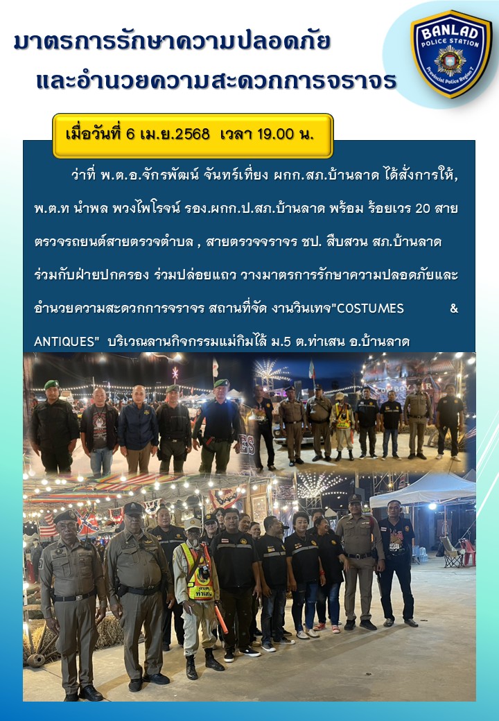 มาตรการรักษาความปลอดภัยและอำนวยความสะดวกการจราจร เมื่อวันที่ 6 เม.ย.2568 เวลา 19.00 น. 10 เมษายน 2568 โดย ณัฐวุฒิ เมืองขวัญใจ