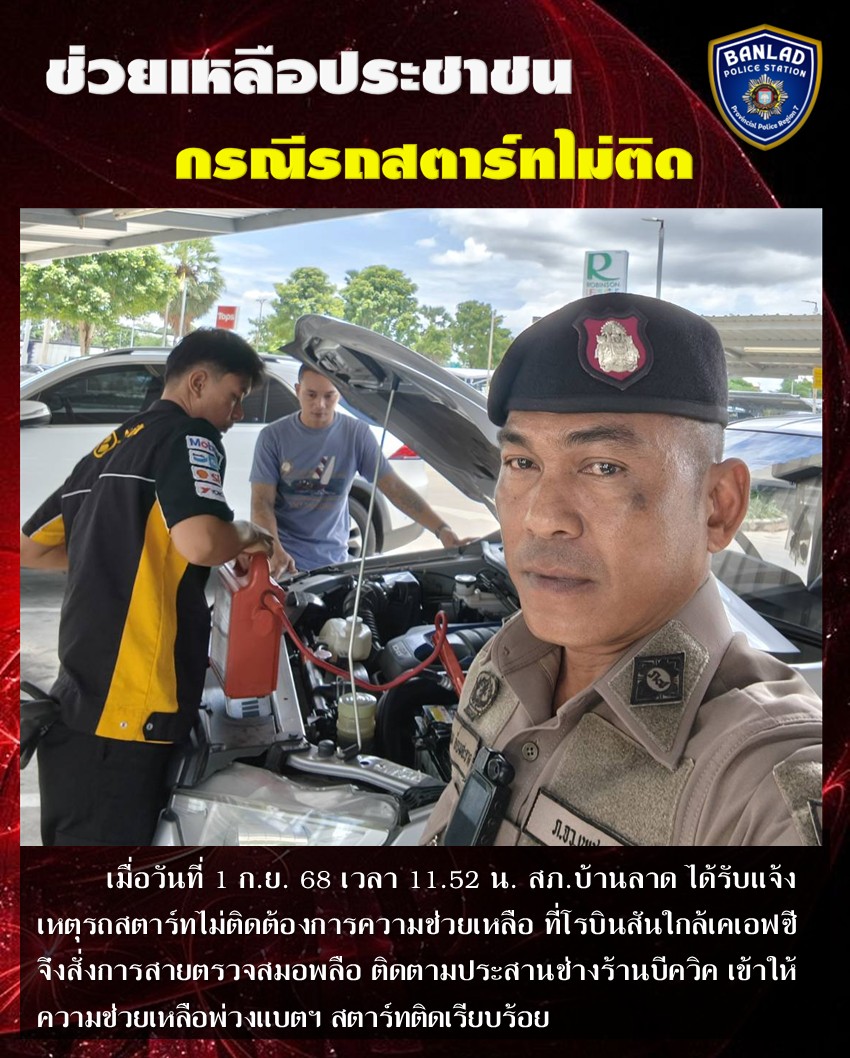 สายตรวจสมอพลือ เข้าให้ความช่วยเหลือประชาชน กรณีรถสตาร์ทไม่ติด เมื่อวันที่ 1 ก.ย. 68 เวลา 11.52 น. 2 กันยายน 2568 โดย ณัฐวุฒิ เมืองขวัญใจ