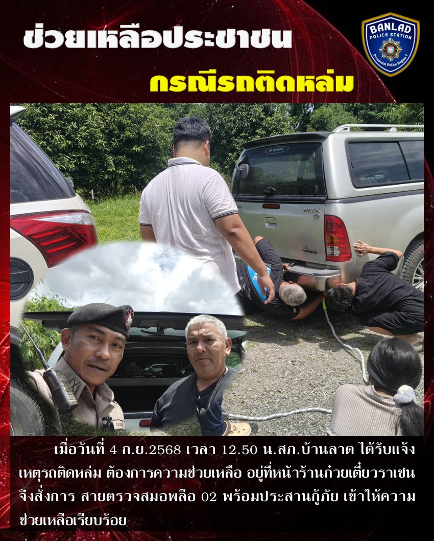 สายตรวจสมอพลือ 02 เข้าให้ความช่วยเหลือประชาชน กรณีรถติดหล่ม เมื่อวันที่ 4 ก.ย.2568 เวลา 12.50 น. 12 กันยายน 2568 โดย ณัฐวุฒิ เมืองขวัญใจ