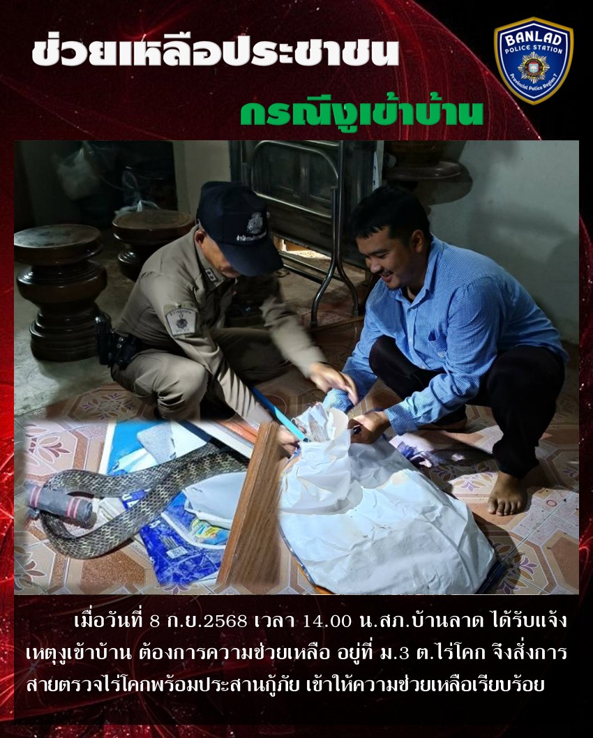 ร้อยเวร 20 ให้ความช่วยเหลือประชาชน กรณีงูเข้าบ้าน เมื่อวันที่ 12 ต.ค.2568 เวลา 20.13 น. 15 ตุลาคม 2568 โดย ณัฐวุฒิ เมืองขวัญใจ