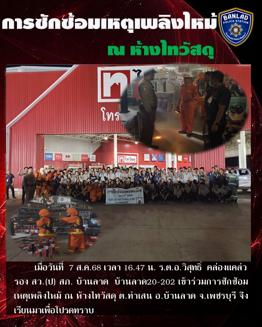 ร.ต.อ.วิสุทธิ์ คล่องแคล่ว รอง สว.(ป) สภ. บ้านลาด บ้านลาด20-202 เข้าร่วมการซักซ้อมเหตุเพลิงไหม้ เมื่อวันที่ 7 ส.ค.68 เวลา 16.47 น. 15 สิงหาคม 2568 โดย ณัฐวุฒิ เมืองขวัญใจ
