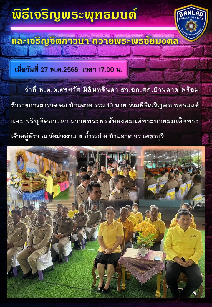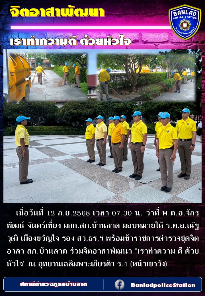 เมื่อวันที่ 23 พ.ค. 2568 เวลา 07.30 น.ว่าที่ พ.ต.อ.จักรพัฒนจันทร์เที่ยง ผกก.สภ.บ้านลาด มอบหมายให้ ร.