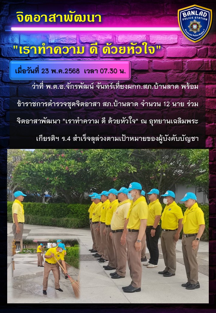 จิตอาสาพัฒนา “เราทำความ ดี ด้วยหัวใจ” ณ อุทยานเฉลิมพระเกียรติฯ เมื่อวันที่ 23 พ.ค.2568 เวลา 07.30 น.