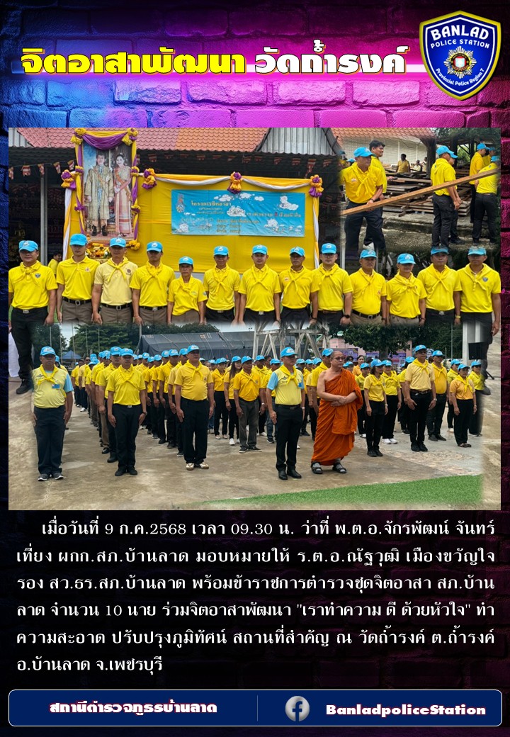 เมื่อวันที่ 9 ก.ค. 2568 เวลา 09.30 น. ว่าที่ พ.ต.อ.จักรพัฒน์ จันทร์เที่ยง ผกก.สภ.บ้านลาด มอบหมายให้