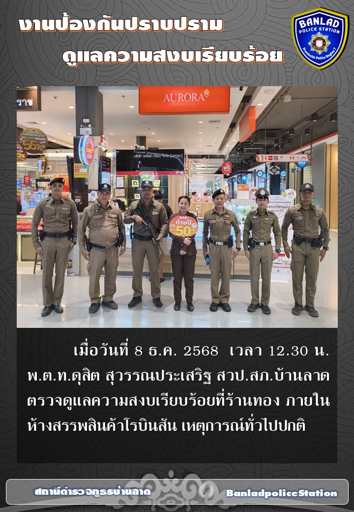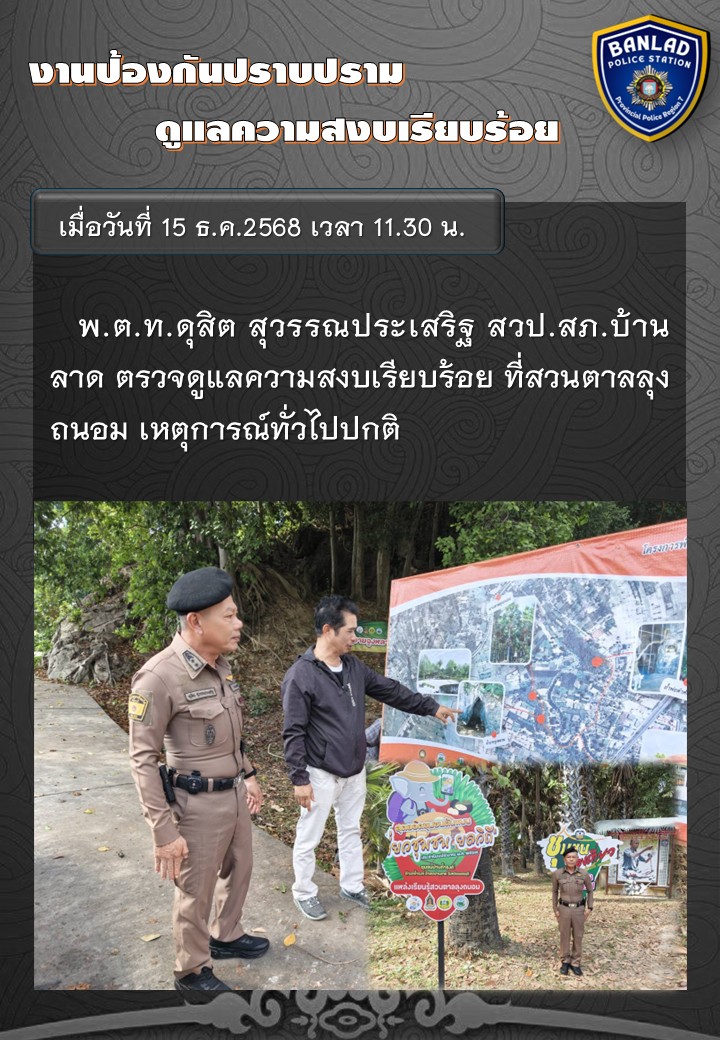 พ.ต.ท.ดุสิต สุวรรณประเสริฐ สวป.สภ.บ้านลาด ตรวจดูแลความสงบเรียบร้อย เมื่อวันที่ 15 ธ.ค.2568 เวลา 11.30 น. 19 ธันวาคม 2568 โดย ณัฐวุฒิ เมืองขวัญใจ