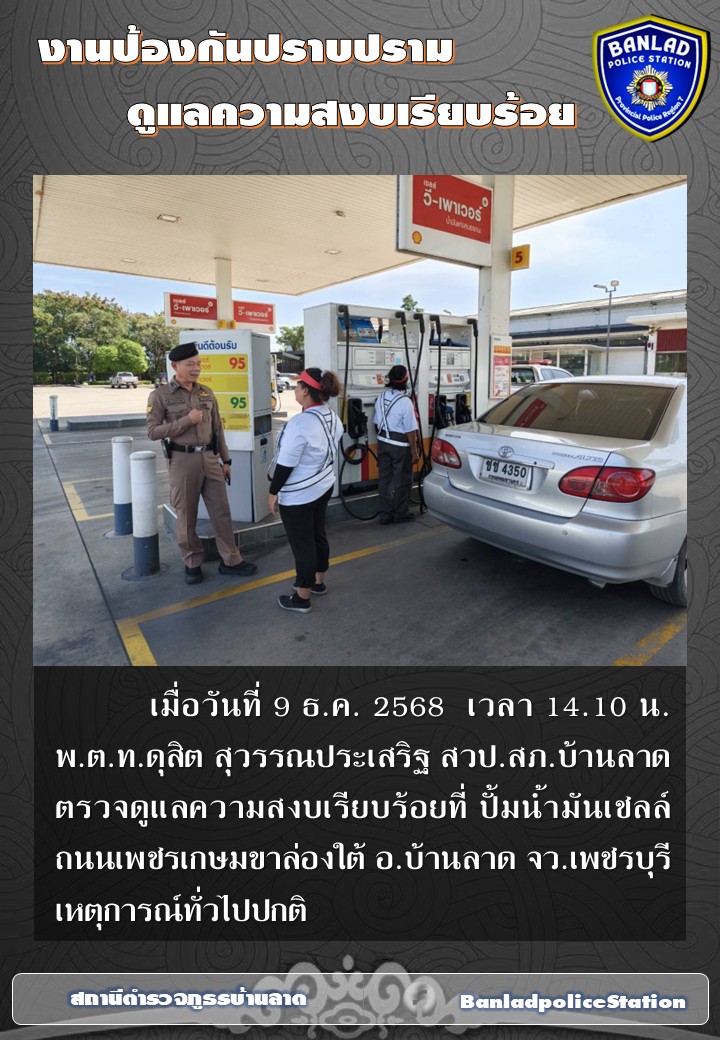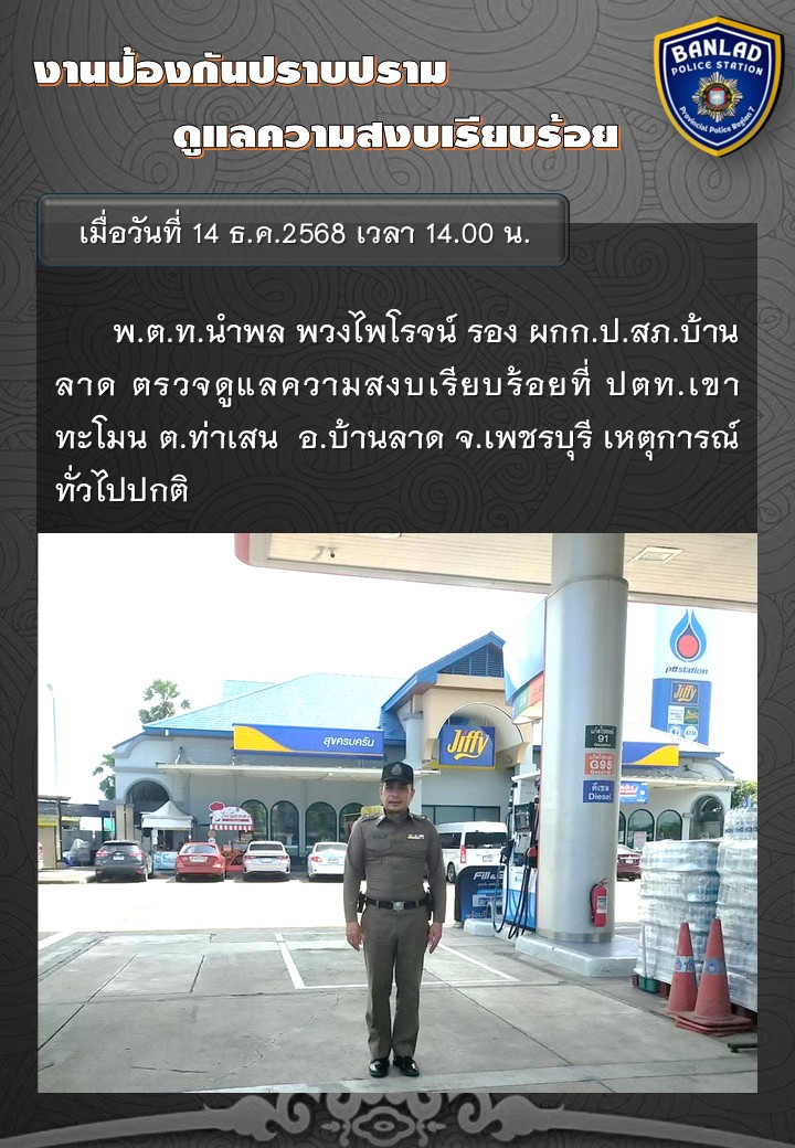 พ.ต.ท.นำพล พวงไพโรจน์ รอง ผกก.ป.สภ.บ้านลาด ตรวจดูแลความสงบเรียบร้อย เมื่อวันที่ 14 ธ.ค.2568 เวลา 14.00 น. 19 ธันวาคม 2568 โดย ณัฐวุฒิ เมืองขวัญใจ
