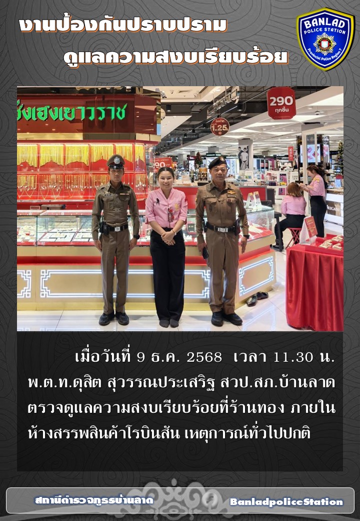 พ.ต.ท.ดุสิต สุวรรณประเสริฐ สวป.สภ.บ้านลาด ตรวจดูแลความสงบเรียบร้อย เมื่อวันที่ 9 ธ.ค. 2568 เวลา 14.10 น. 12 ธันวาคม 2568 โดย ณัฐวุฒิ เมืองขวัญใจ