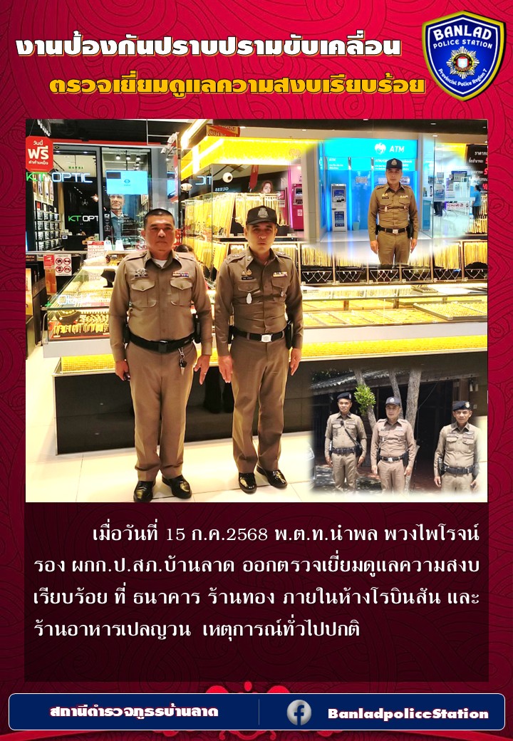 พ.ต.ท.นำพล พวงไพโรจน์ รอง ผกก.ป.สภ.บ้านลาด ออกตรวจเยี่ยมดูแลความสงบเรียบร้อย เมื่อวันที่ 15 ก.ค.2568 23 กรกฎาคม 2568 โดย ณัฐวุฒิ เมืองขวัญใจ