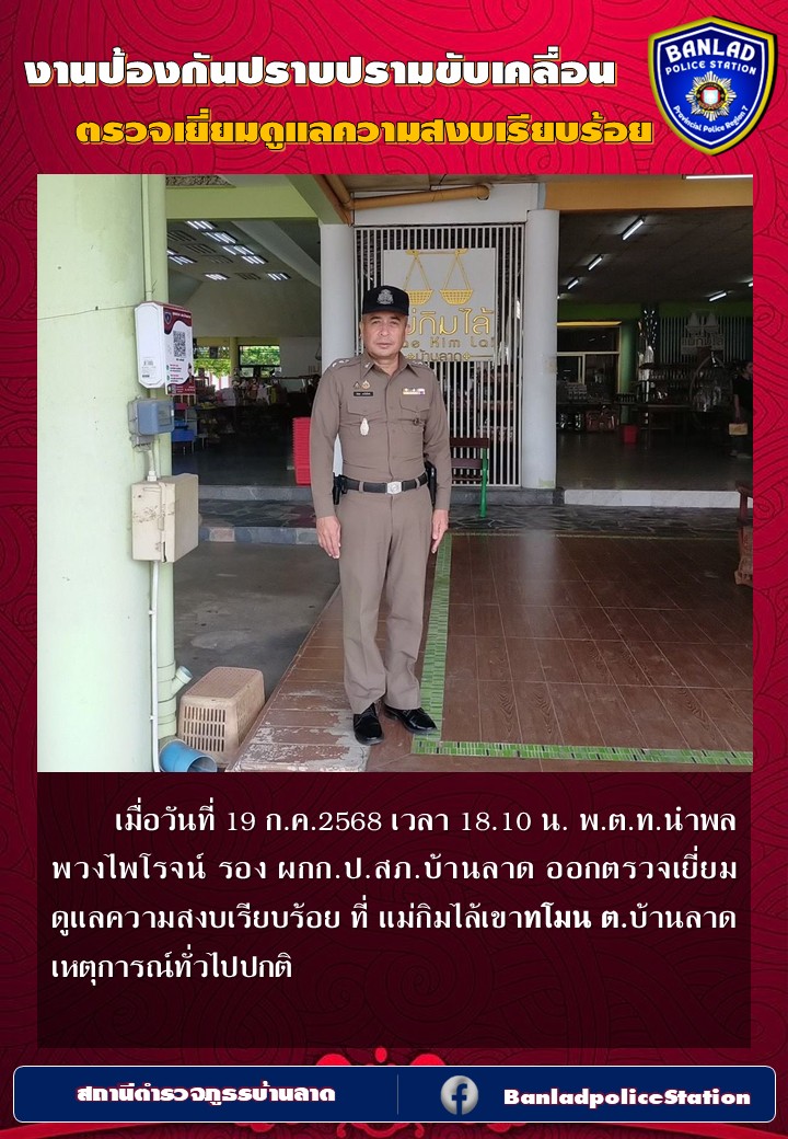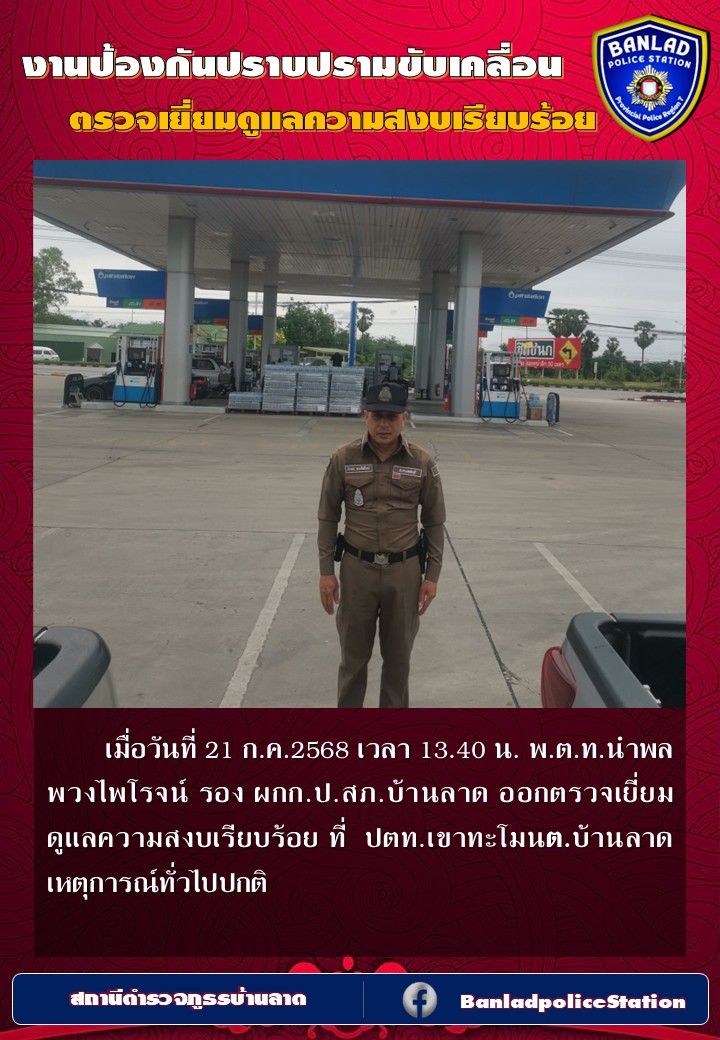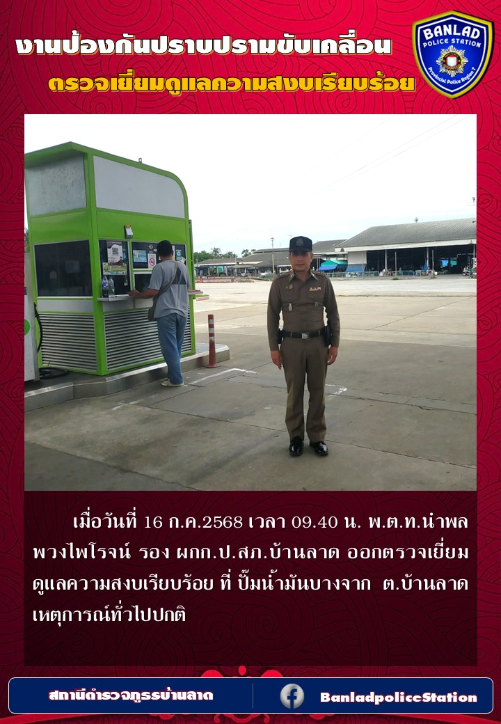 พ.ต.ท.นำพล พวงไพโรจน์ รอง ผกก.ป.สภ.บ้านลาด ออกตรวจเยี่ยมดูแลความสงบเรียบร้อย เมื่อวันที่ 16 ก.ค.2568 เวลา 09.40 น. 23 กรกฎาคม 2568 โดย ณัฐวุฒิ เมืองขวัญใจ