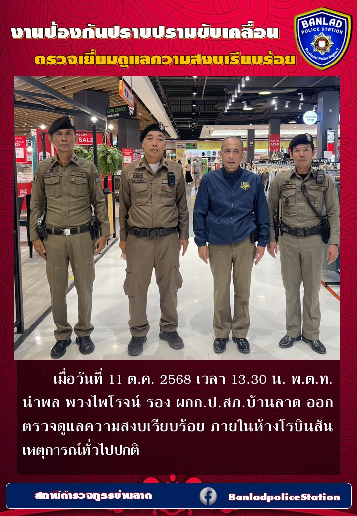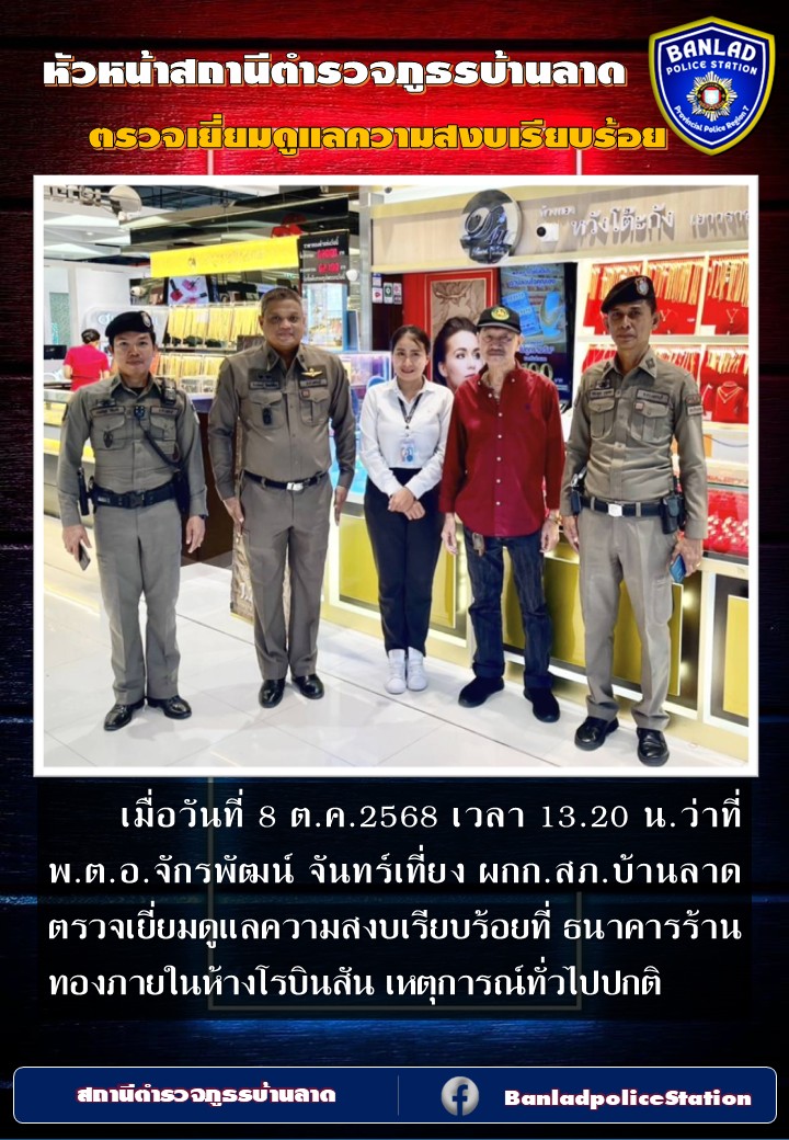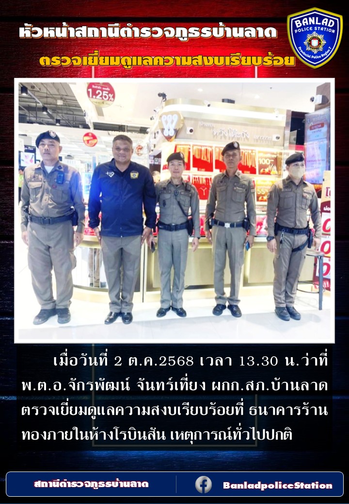 ว่าที่ พ.ต.อ.จักรพัฒน์ จันทร์เที่ยง ผกก.สภ.บ้านลาด ตรวจเยี่ยมดูแลความสงบเรียบร้อย เมื่อวันที่ 2 ต.ค.2568 เวลา 13.30 น. 7 ตุลาคม 2568 โดย ณัฐวุฒิ เมืองขวัญใจ