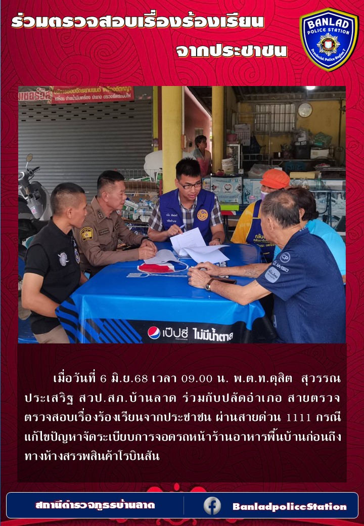 พ.ต.ท.ดุสิต สุวรรณประเสริฐ สวป.สภ.บ้านลาด ร่วมตรวจสอบเรื่องร้องเรียนจากประชาชน เมื่อวันที่ 6 มิ.ย.68 เวลา 09.00 น. 9 มิถุนายน 2568 โดย ณัฐวุฒิ เมืองขวัญใจ