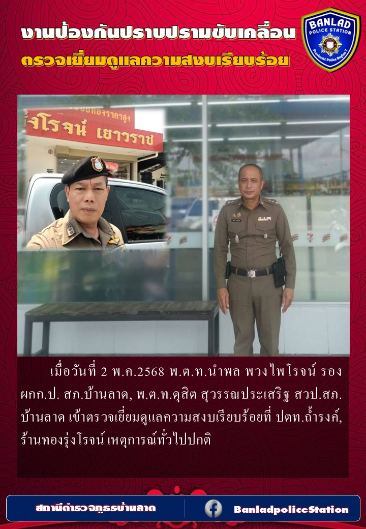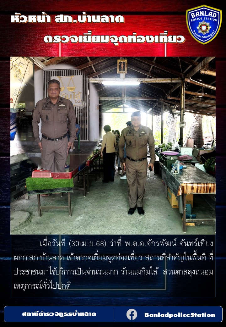ว่าที่ พ.ต.อ.จักรพัฒน์ จันทร์เที่ยง ผกก.สภ.บ้านลาด เข้าตรวจเยี่ยมจุดท่องเที่ยว สถานที่สำคัญในพื้นที่ เมื่อวันที่ 30เม.ย.2568 1 พฤษภาคม 2568 โดย ณัฐวุฒิ เมืองขวัญใจ