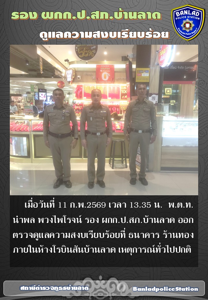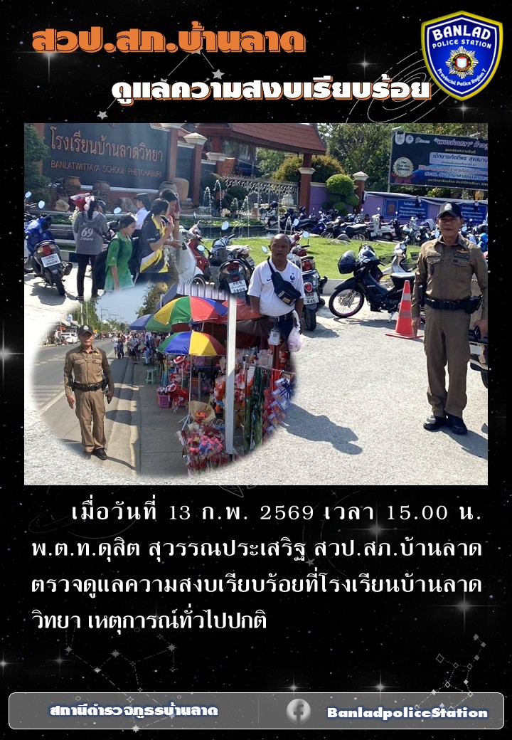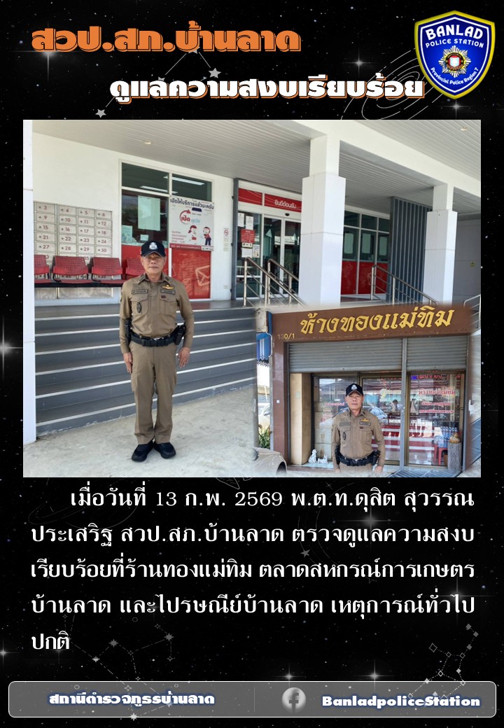 พ.ต.ท.นำพล พวงไพโรจน์ รอง ผกก.ป.สภ.บ้านลาด ออกตรวจดูแลความสงบเรียบร้อย เมื่อวันที่ 11 ก.พ.2569 เวลา 13.35 น. 17 กุมภาพันธ์ 2569 โดย ณัฐวุฒิ เมืองขวัญใจ