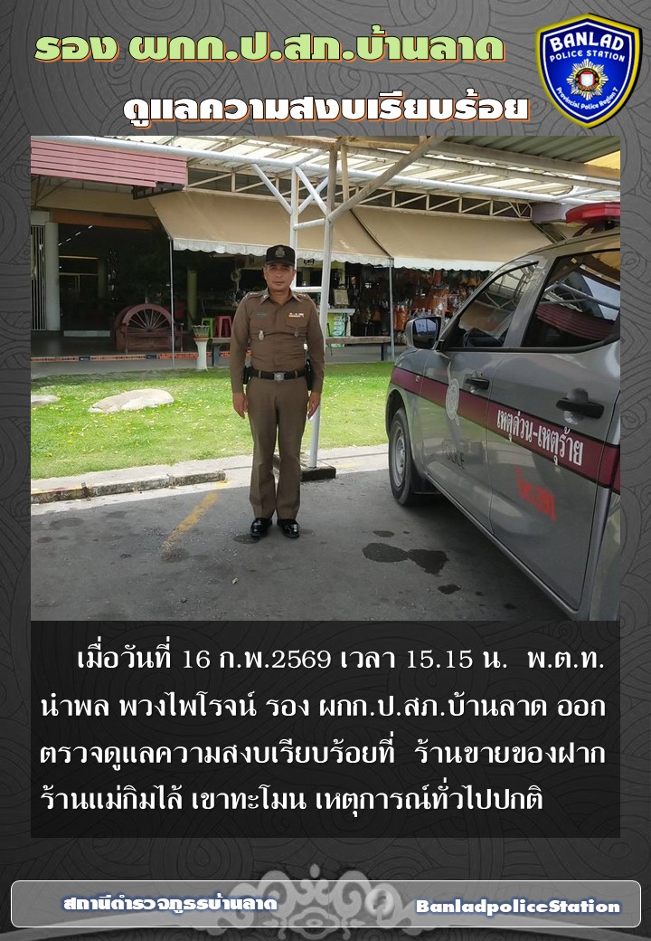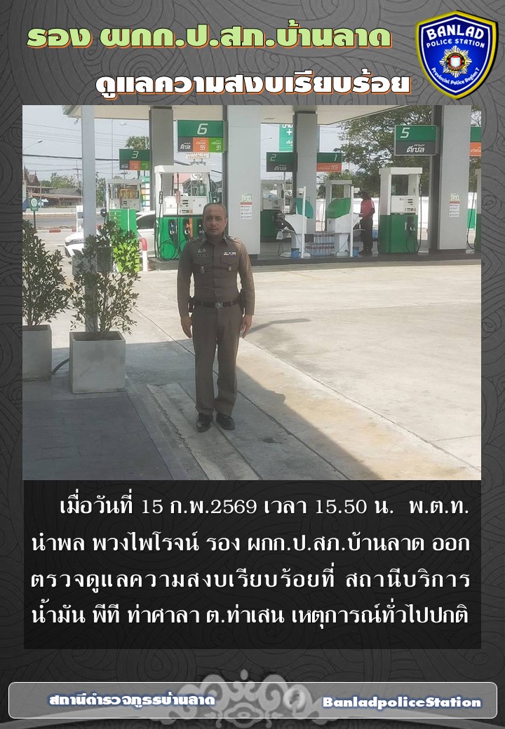 พ.ต.ท.นำพล พวงไพโรจน์ รอง ผกก.ป.สภ.บ้านลาด ออกตรวจดูแลความสงบเรียบร้อย เมื่อวันที่ 15 ก.พ.2569 เวลา 15.50 น. 17 กุมภาพันธ์ 2569 โดย ณัฐวุฒิ เมืองขวัญใจ