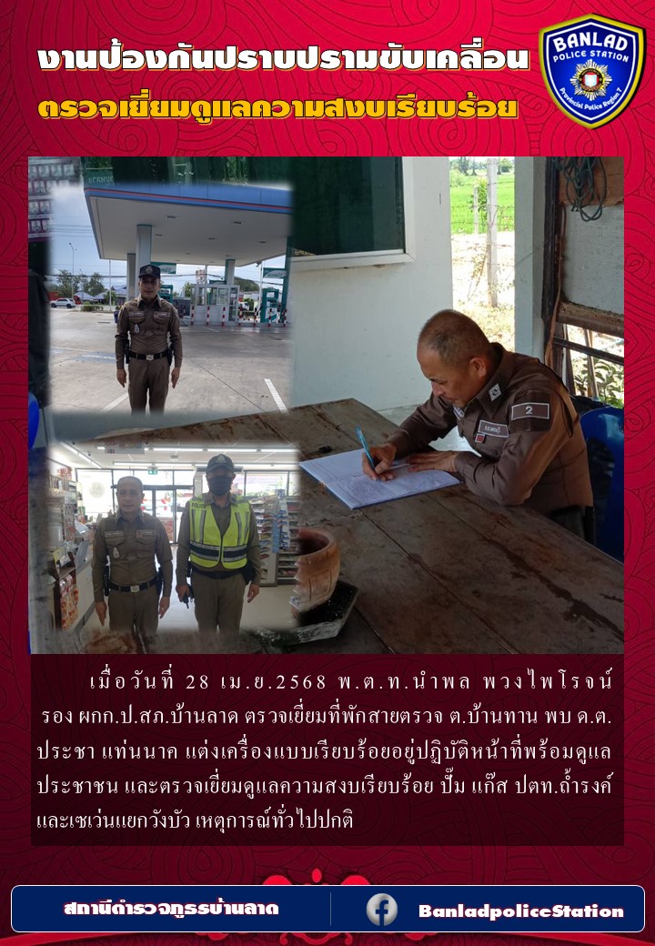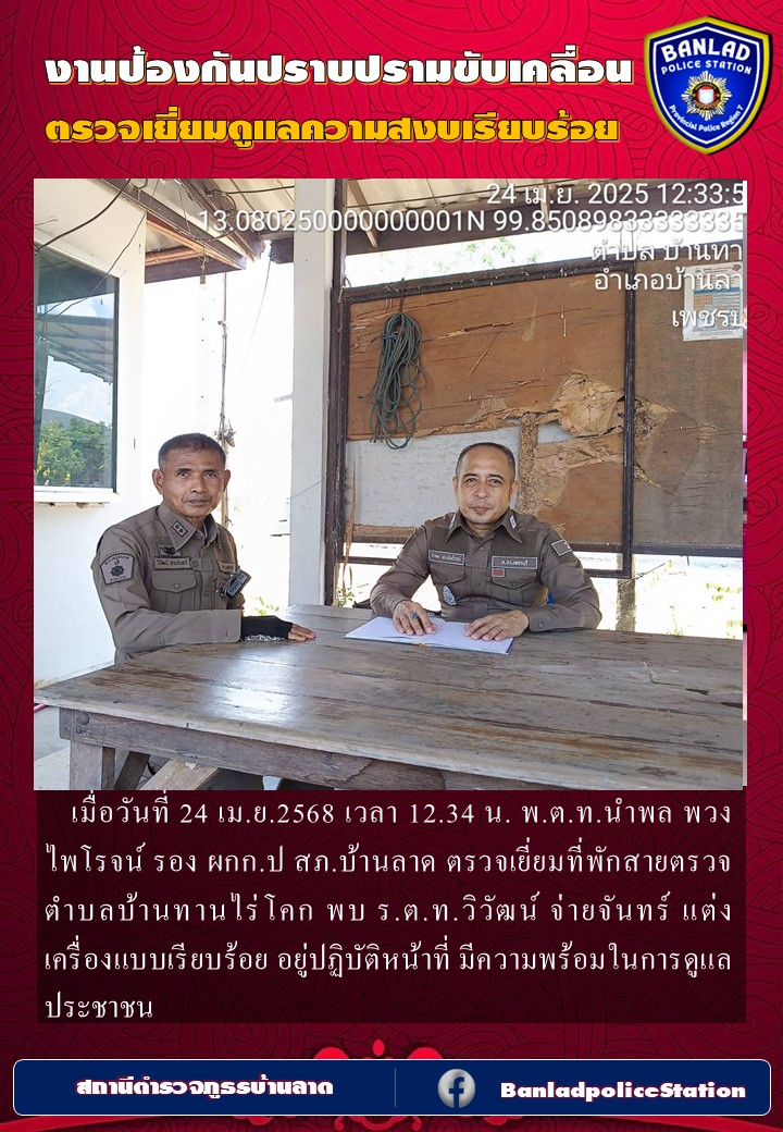 เมื่อวันที่ 23 เมษายน 2568 เวลา 18.30 น.🔸พ.ต.อ.จักรพัฒน์ จันทร์เที่ยง ผกก.สภ. บ้านลาด🔸พ.ต.ท.นำพล พวง