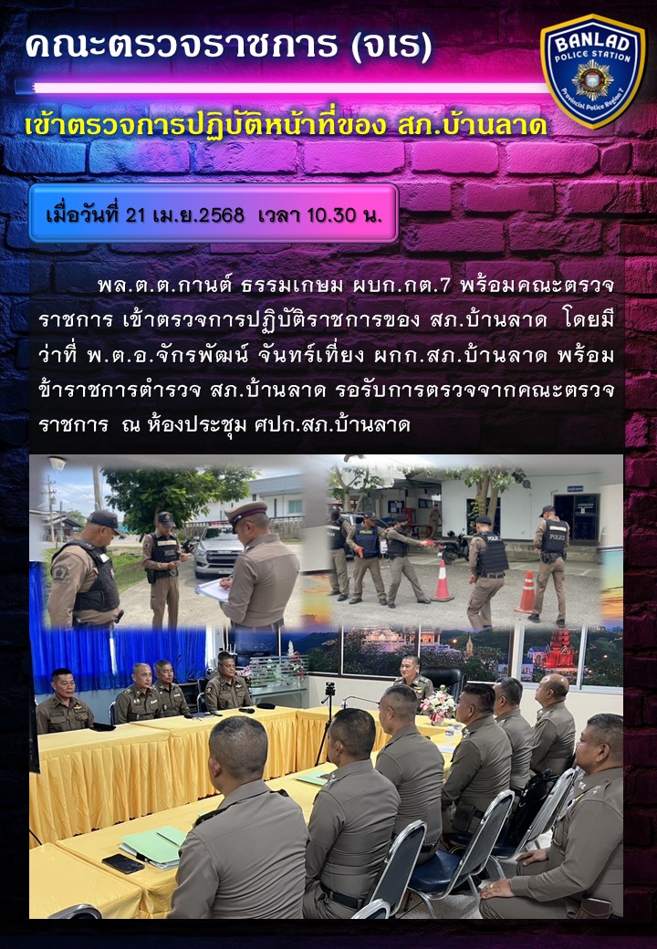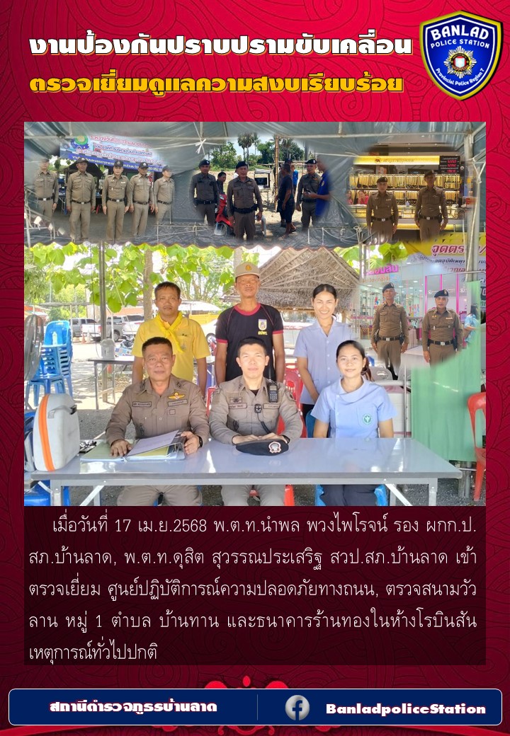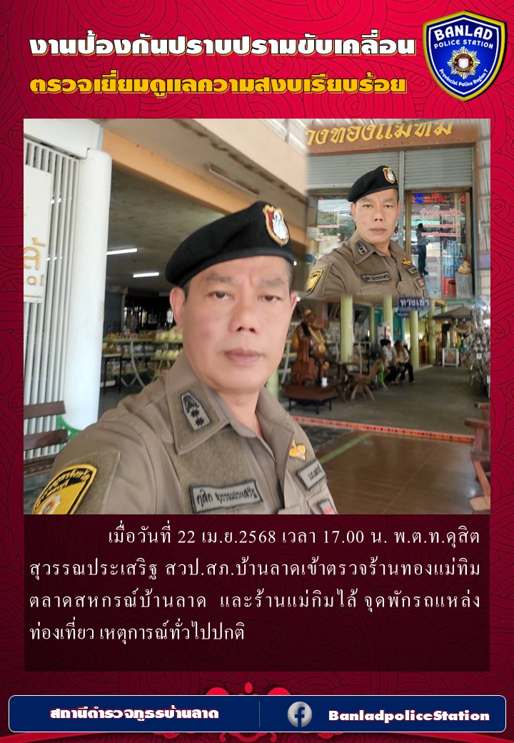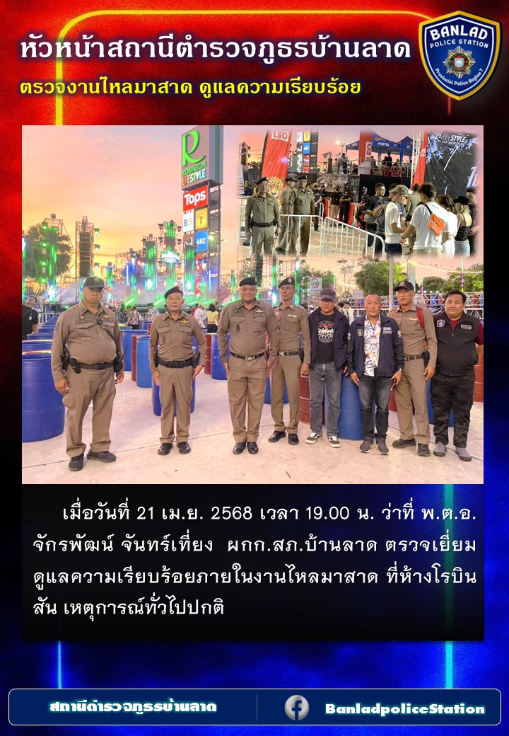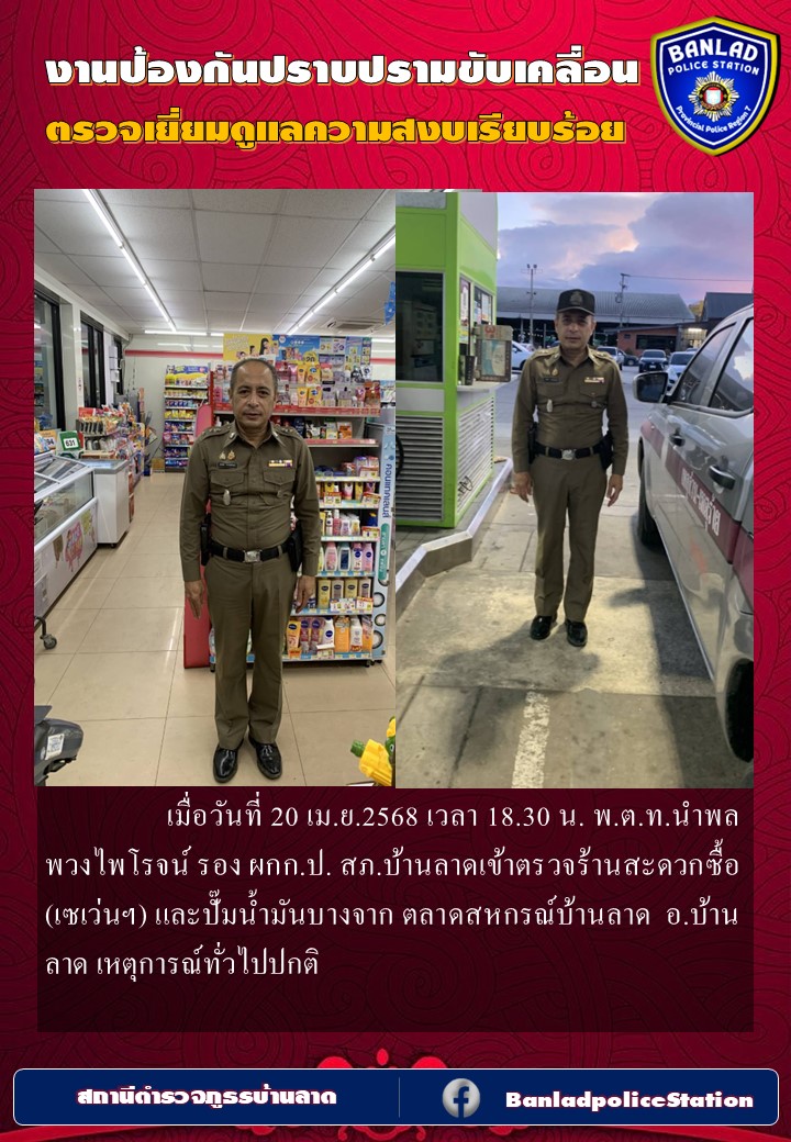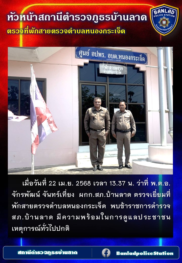 เมื่อวันที่ 21 เมษายน 2568 เวลา 18.00 น. ว่าที่ พ.ต.อ.จักรพัฒน์ จันทร์เที่ยง ผกก.สภ. บ้านลาด, พ.ต.ท.