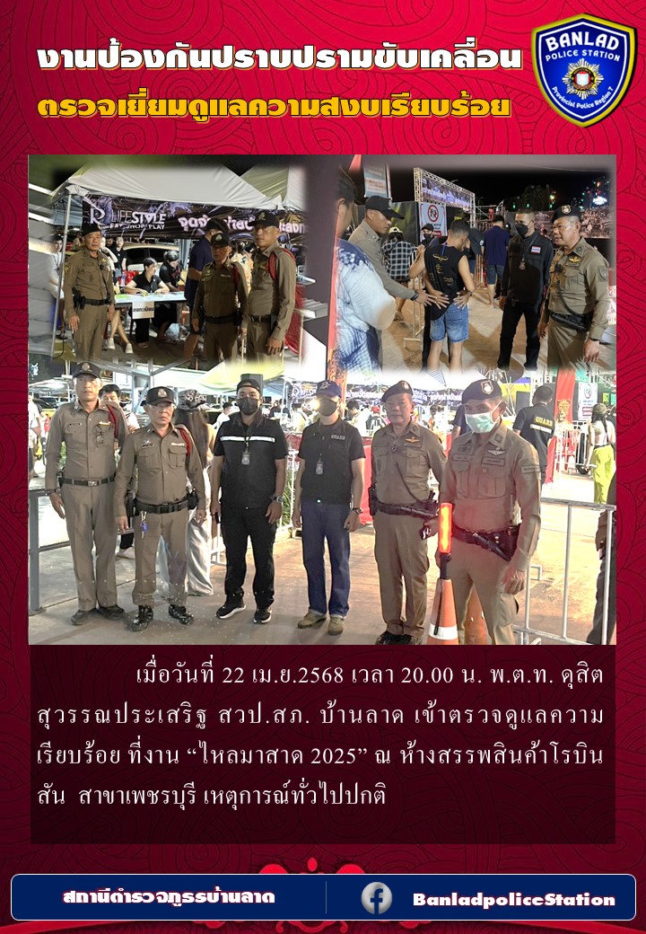วางมาตรการป้องกันปราบปราม พร้อมดูแลประชาชน งานไหลมาสาด เมื่อวันที่ 21 เม.ย.2568 เวลา 18.00 น.