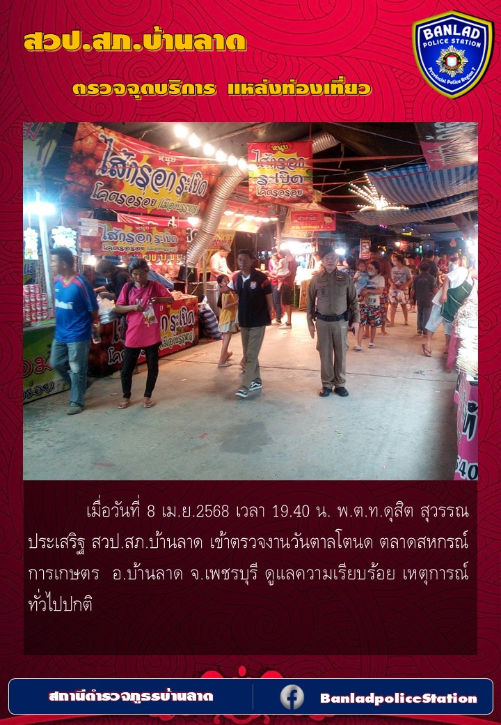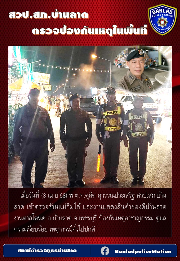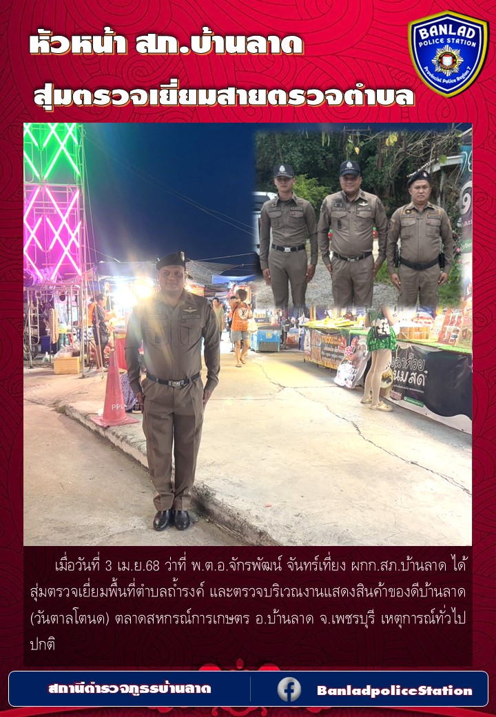 เมื่อวันที่ 5 เม.ย. 68 เวลา 19.10 น. ว่าที่ พ.ต.อ.จักรพัฒน์ จันทร์เที่ยง ผกก.สภ.บ้านลาด, ได้สั่งการ