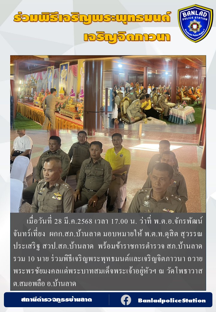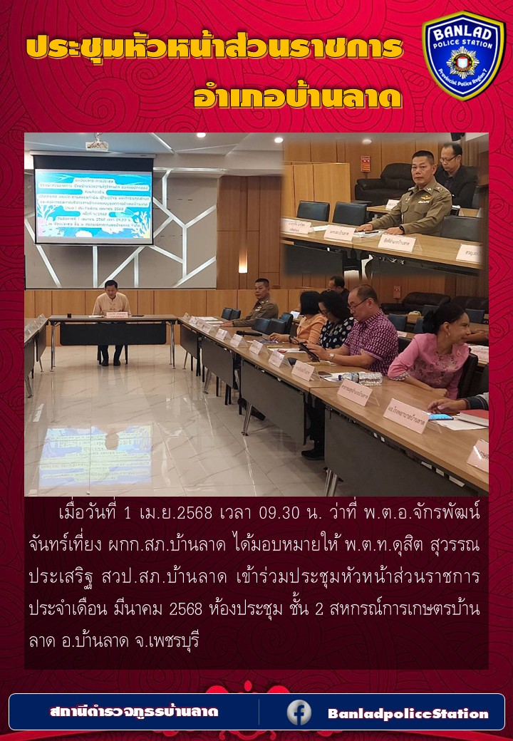 เมื่อวันที่ 1 เม.ย.2568 เวลา 09.30 น. ว่าที่ พ.ต.อ.จักรพัฒน์ จันทร์เที่ยง ผกก.สภ.บ้านลาด ได้มอบหมายใ