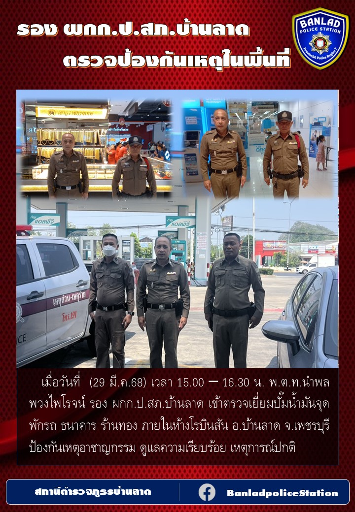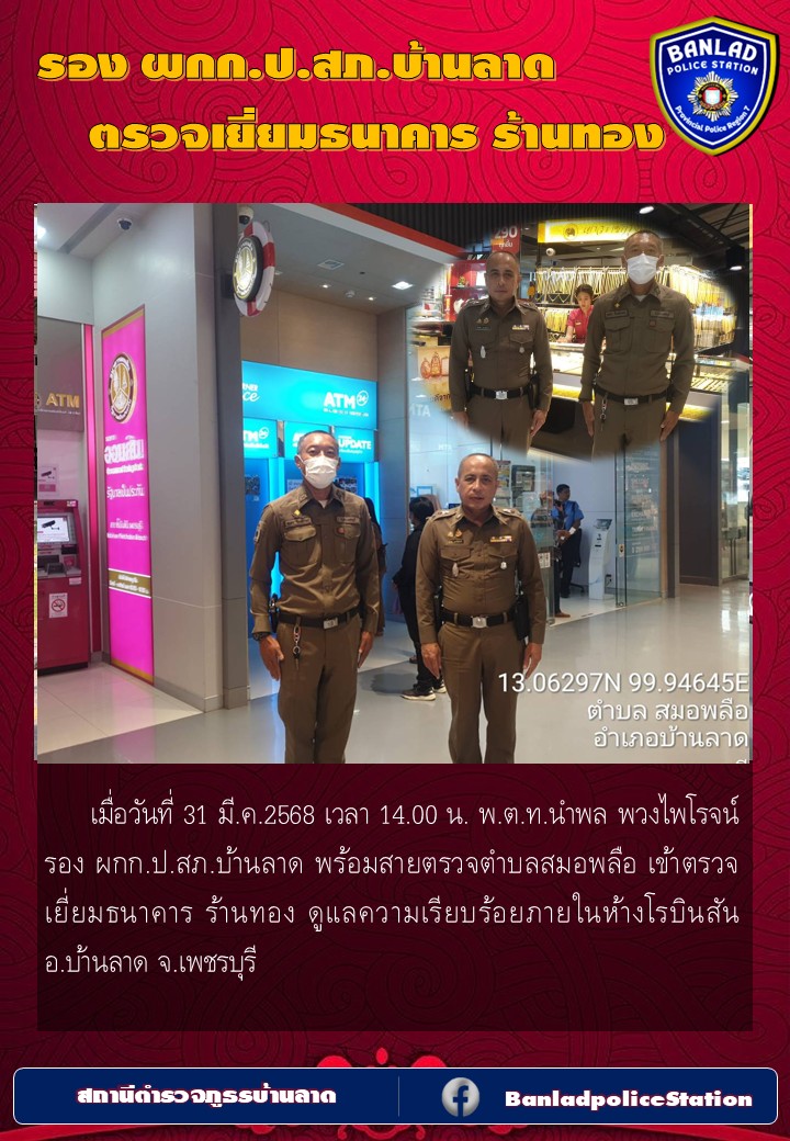 เมื่อวันที่ 31 มี.ค.2568 เวลา 14.00 น. พ.ต.ท.นำพล พวงไพโรจน์ รอง ผกก.ป.สภ.บ้านลาด พร้อมสายตรวจตำบลสม