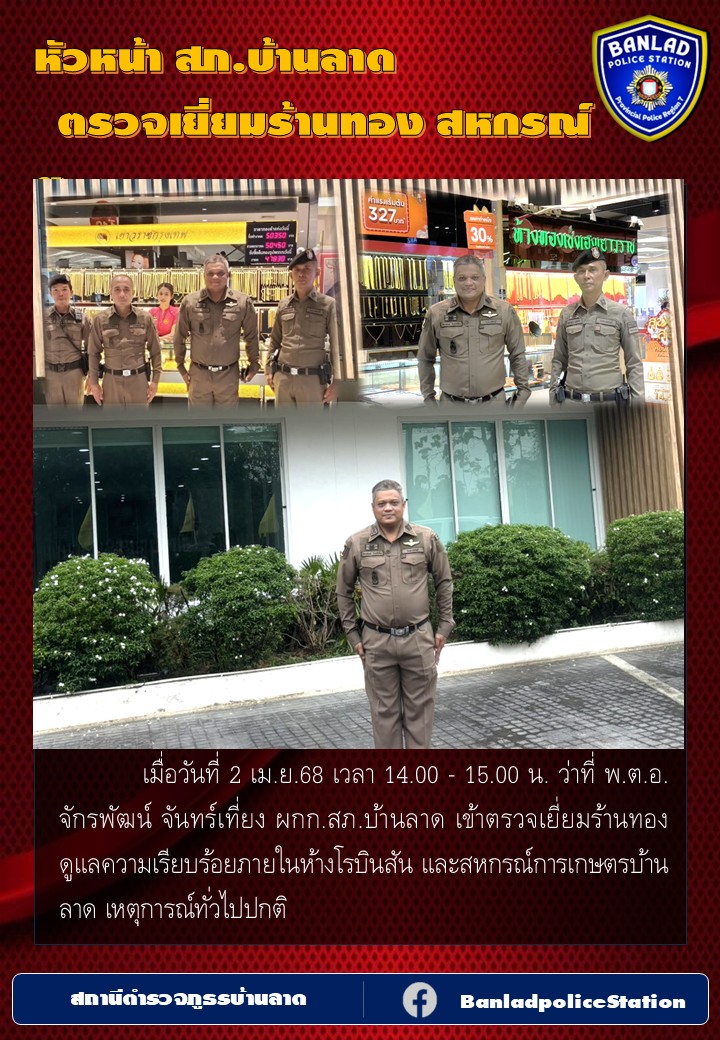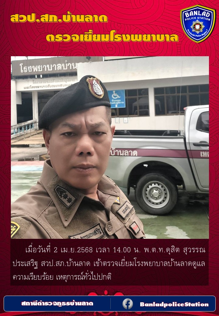 เมื่อวันที่ 2 เม.ย.68 เวลา 08.30 น. ว่าที่ พ.ต.อ.จักรพัฒน์ จันทร์เที่ยง ผกก.สภ.บ้านลาด ได้มอบหมายให้