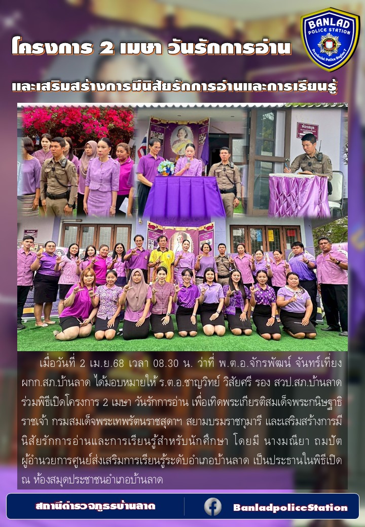 ร่วมพิธีเปิดโครงการ 2 เมษา วันรักการอ่าน เมื่อวันที่ 2 เม.ย.68 เวลา 08.30 น.