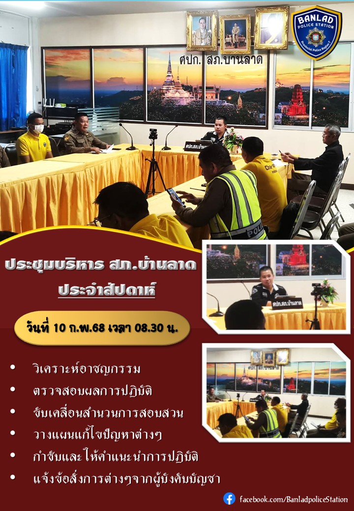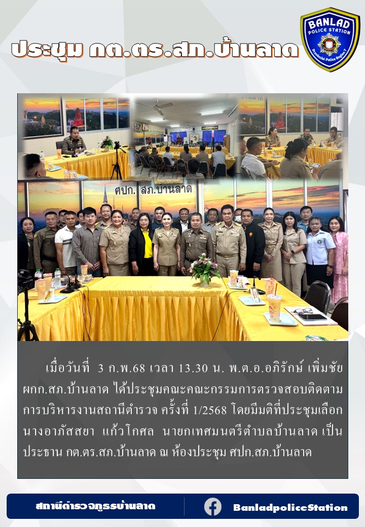 เมื่อวันที่ 3 ก.พ.68 เวลา 13.30 น. พ.ต.อ.อภิรักษ์ เพิ่มชัย ผกก.สภ.บ้านลาด ได้ประชุมคณะคณะกร