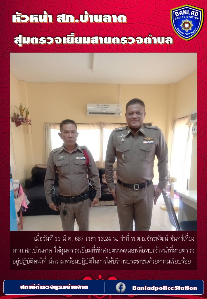 หัวหน้า สภ.บ้านลาด สุ่มตรวจเยี่ยมสายตรวจตำบล เมื่อวันที่ 11 มี.ค. 687 เวลา 13.24 น.