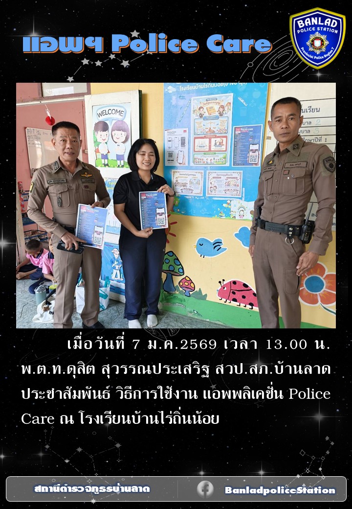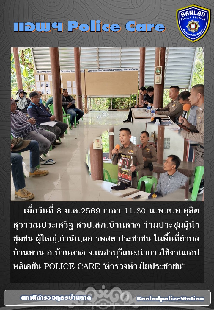 พ.ต.ท.ดุสิต สุวรรณประเสริฐ สวป.สภ.บ้านลาดประชาสัมพันธ์ วิธีการใช้งาน แอพพลิเคชั่น Police Care เมื่อวันที่ 7 ม.ค.2569 เวลา 13.00 น. 8 มกราคม 2569 โดย ณัฐวุฒิ เมืองขวัญใจ