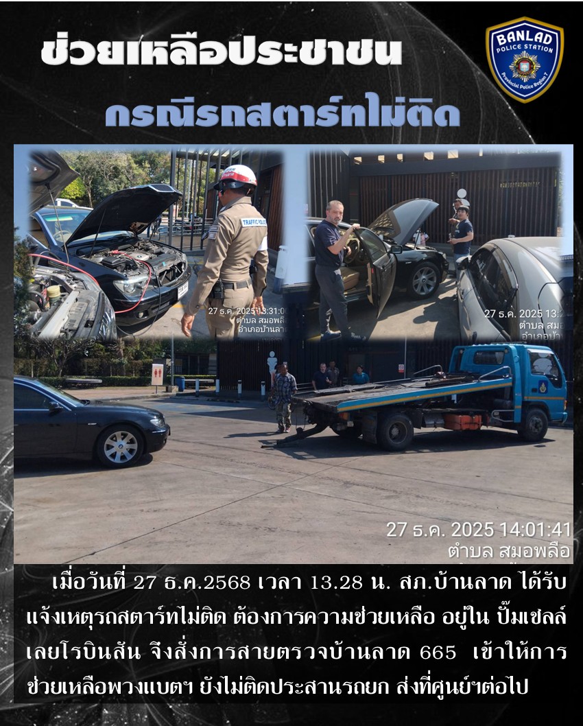 สายตรวจบ้านลาด 665 ให้การช่วยเหลือประชาชนกรณีรถสตาร์ทไม่ติด เมื่อวันที่ 27 ธ.ค.2568 เวลา 13.28 น. 5 มกราคม 2569 โดย ณัฐวุฒิ เมืองขวัญใจ