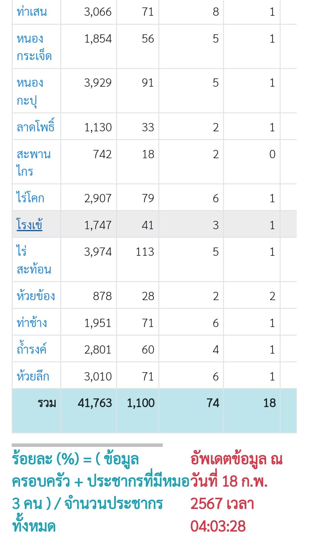 ข้อมูล ณ วันที่ 18 กุมภาพันธ์ 2567